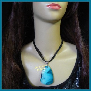 Beau pendentif en agate  de couleur vert/bleu canard de forme libre.
