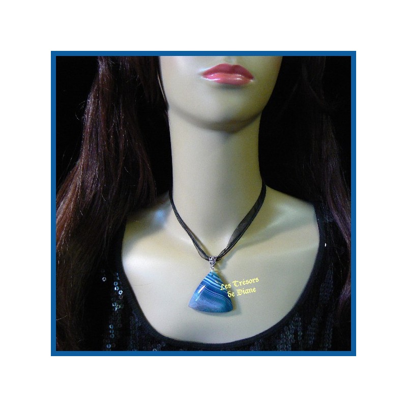 Beau pendentif composé d'une agate de différentes nuances de bleu.