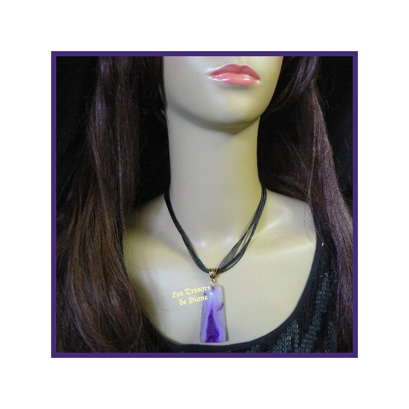 Beau pendentif trapèze composé d'une agate de différentes nuances de mauve et violet.