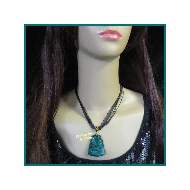 Très beau pendentif composé d'une agate de différentes nuances de bleu-vert profond.