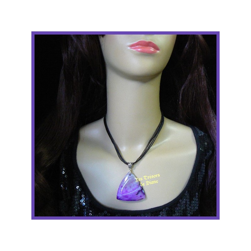 Beau pendentif en agate naturelle de différentes nuances de violet et de parme.