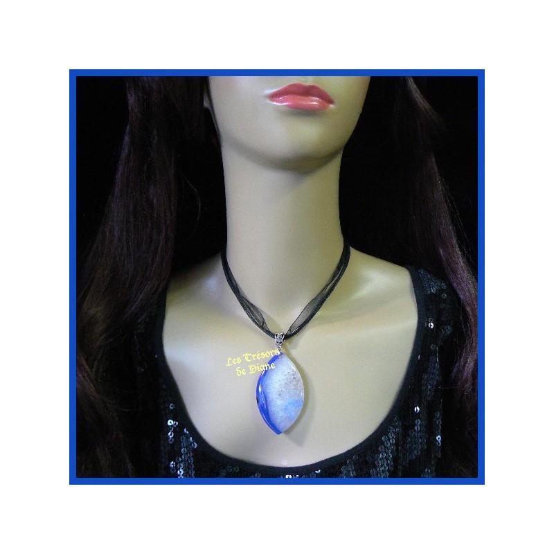 Beau pendentif en agate naturelle laissant transparaître toute la beauté de ses cristaux.