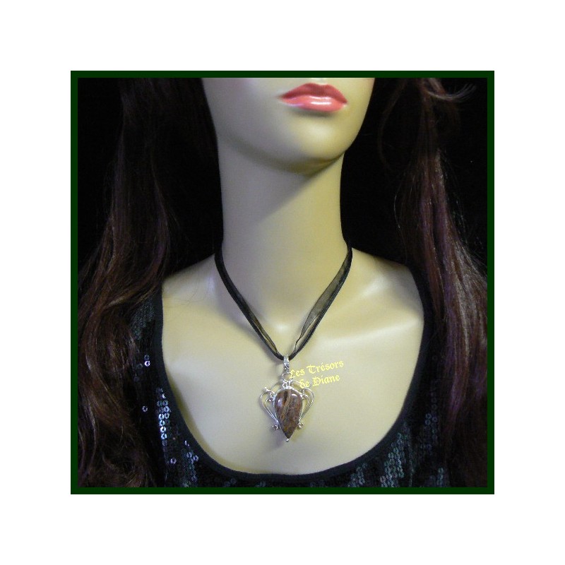 Pendentif raffiné composé d'un très beau jaspe brun en forme de goutte.
