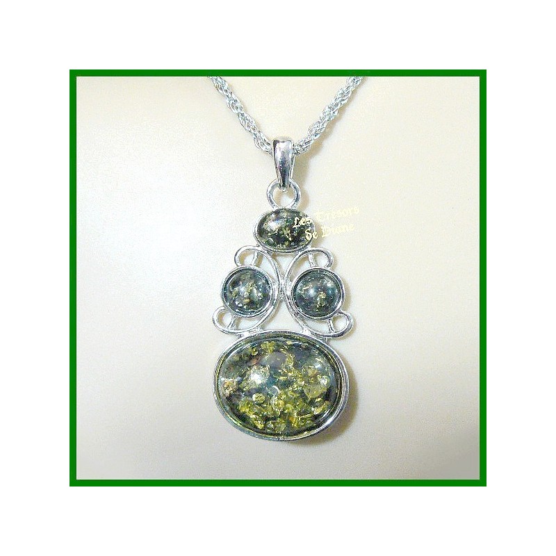 Très beau pendentif en ambre de synthèse vert moyen.